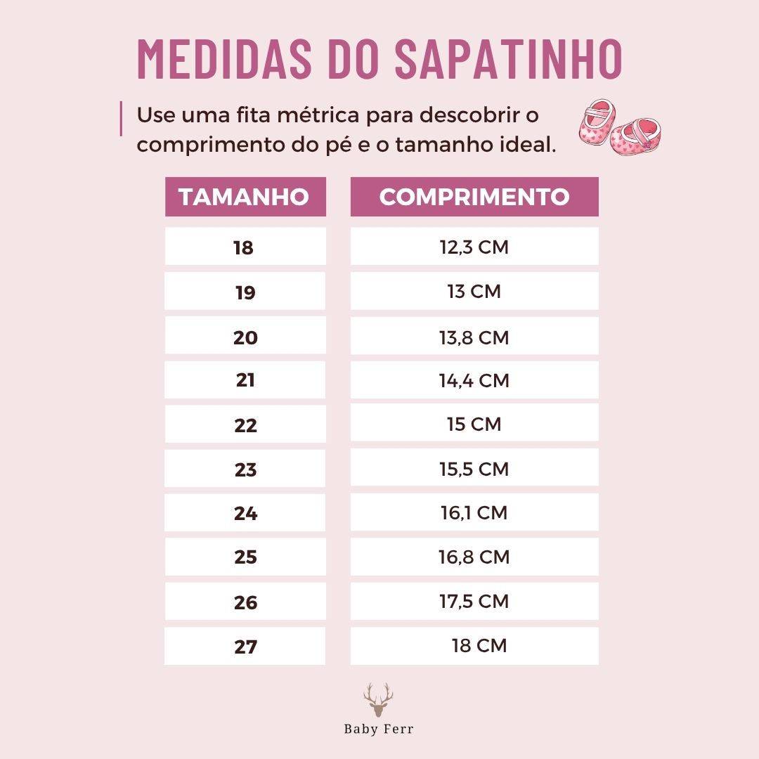 Verifique a medida do pé de sua bebê antes de efetuar o pedido: